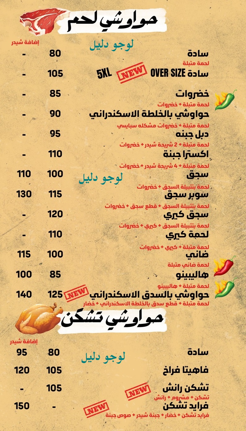 منيو مطعم حواوشى الرفاعى