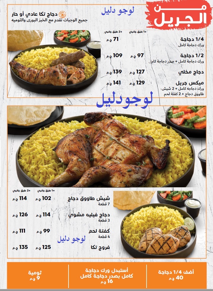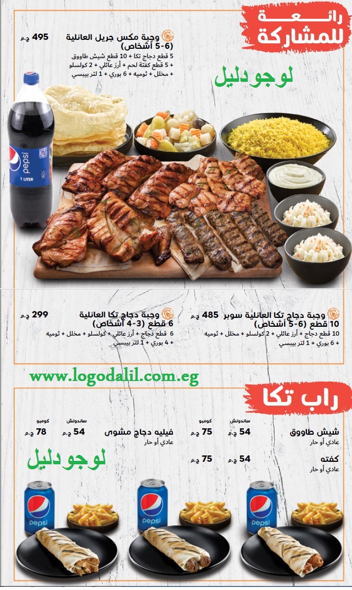 منيو سلسلة مطاعم دجاج تكا لجميع الفروعالاسعار شامله الضريبه — رقم خدمة التوصيل: 19099