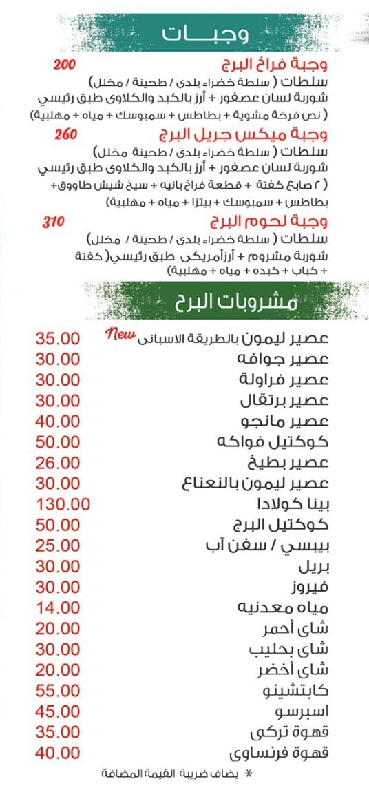 منيو سلسلة مطاعم البرج للمآكولات البحرية